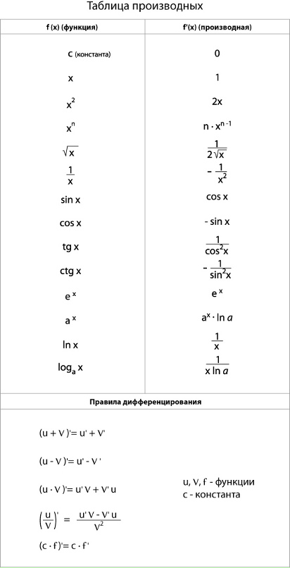 Таблица производных формулы и правила дифференцирования - найдено 60 изображений